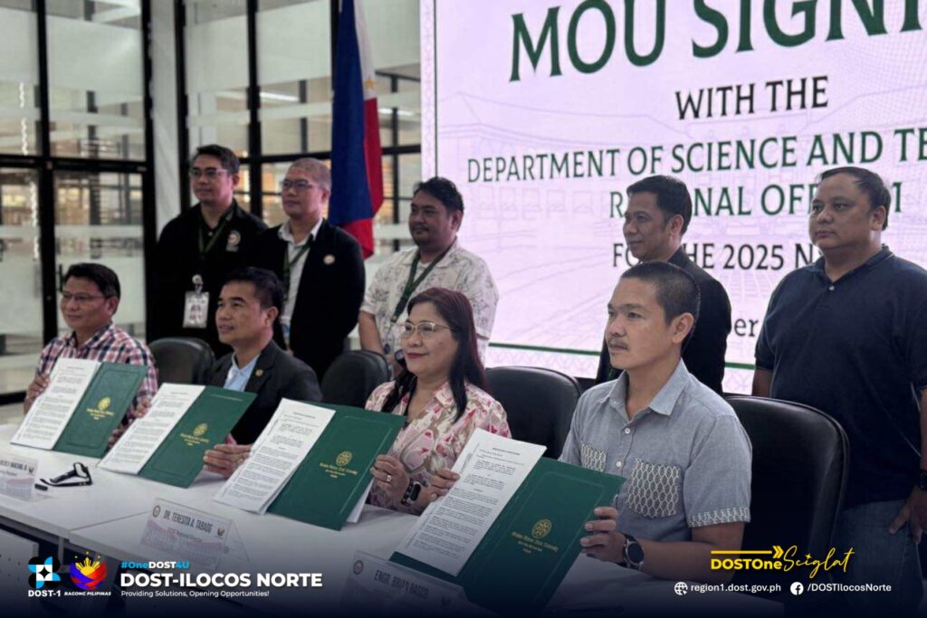 Laoag City, Ilocos Norte – The Department of Science and Technology Region 1 (DOST Region 1) has formalized a Triple Partnership with Mariano Marcos State University (MMSU), Northwestern University (NWU), and Northern Christian College (NCC) to co- host the upcoming 2025 National Science, Technology and Innovation Week (2025 NSTW) in Region 1. The collaboration, led by DOST Regional Director Teresita A. Tabaog, underscores the region’s commitment to advancing science, technology, and innovation through strengthened partnerships with State Universities and College (SUCs) and Higher Education Institutions (HEIs).